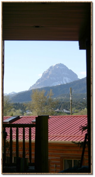 View from the hot tub deck. This is Crowsnest Mountain which is also the name of our Municipality.